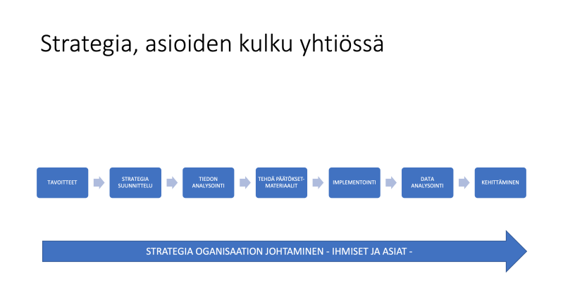 Suunnittelu - strategia - päätöksenteko implementointi - analysointi - tavoitteen tarkistaminen - tuloksen analysointi ja kehittäminen - uusi suunnitelma